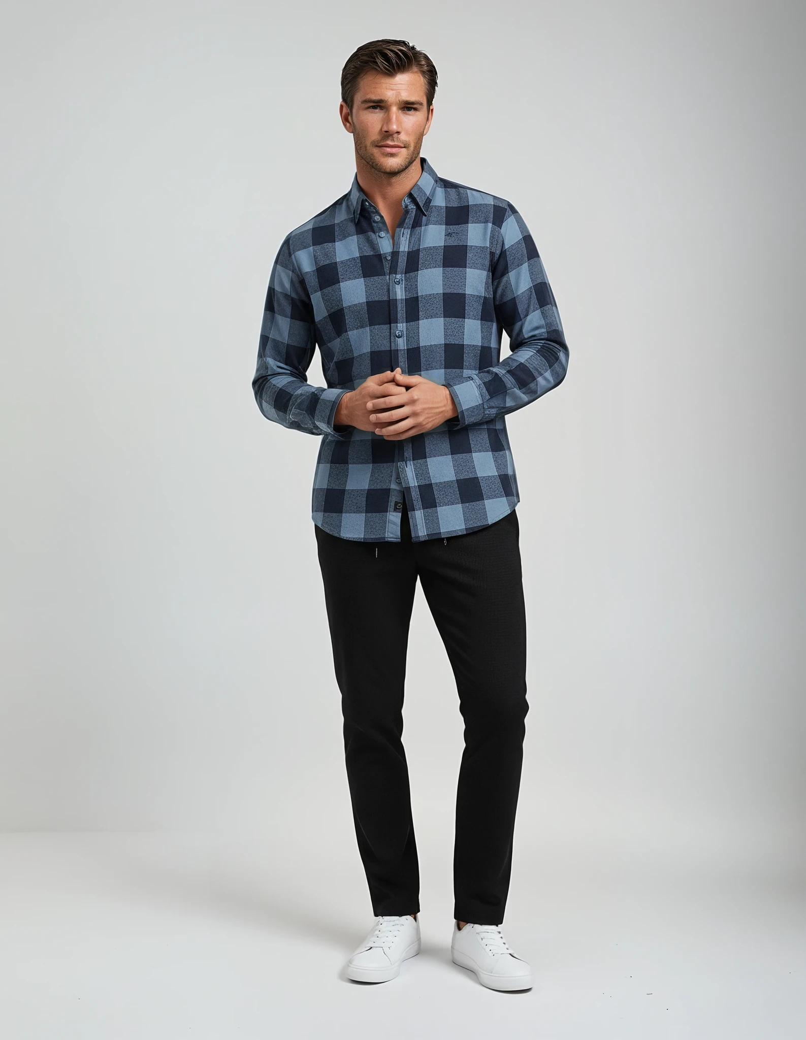 Modernes Hemd im Deep Blue Check – stilvoll, frisch und perfekt für jeden Tag.