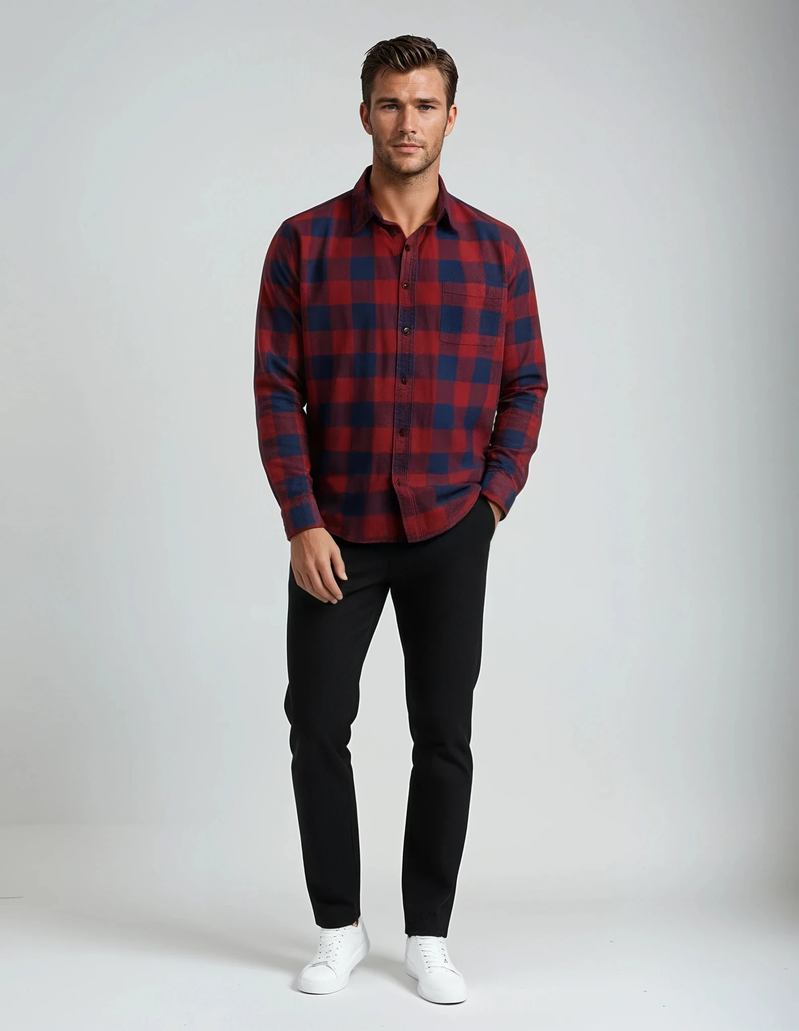Modernes Hemd im auffälligen Tawny-Port-Karomuster – ideal für Alltag, Freizeit oder stilvolle Layer-Outfits.