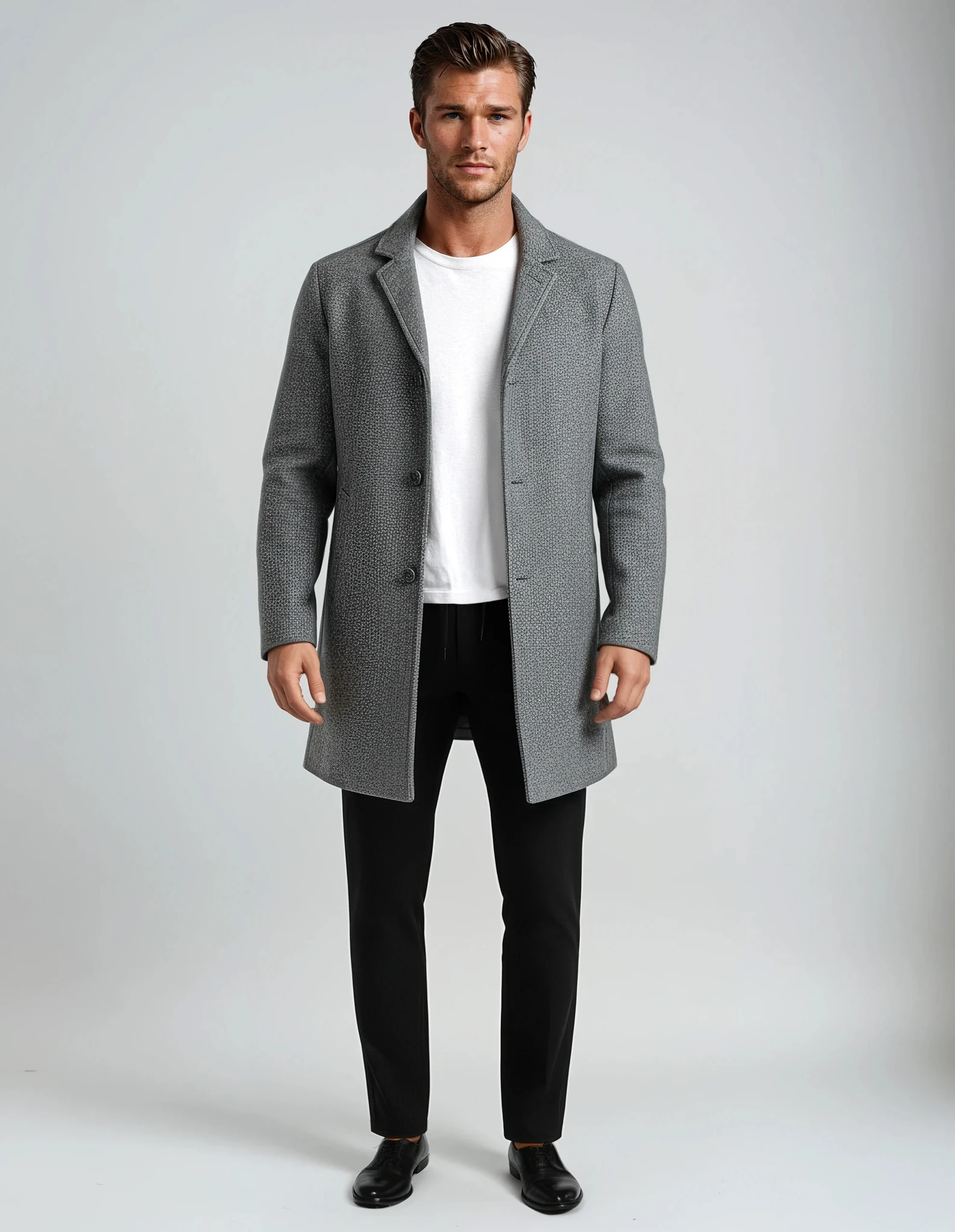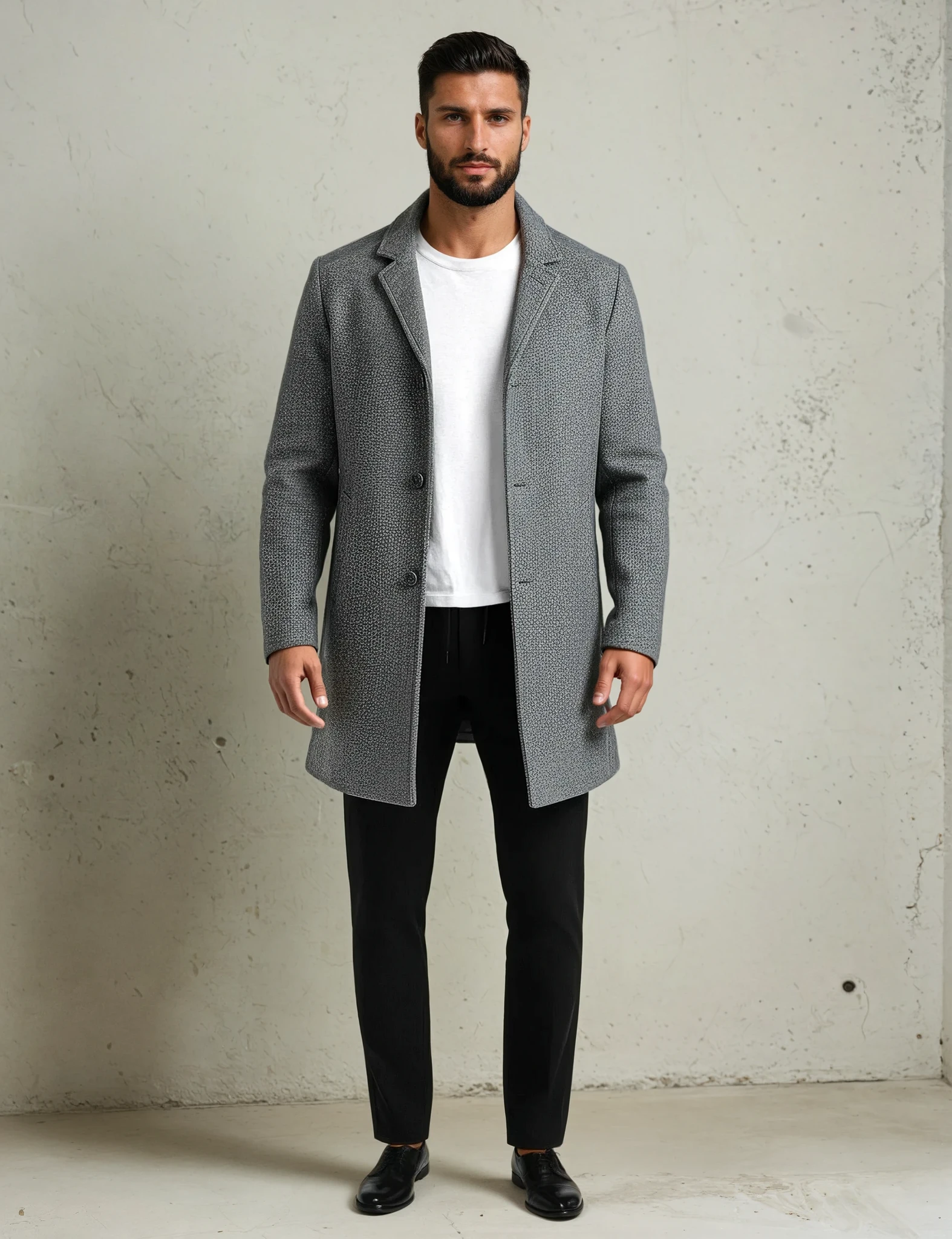 Eleganter Mantel im zeitlosen Gray-Mix – ideal für Business, Events oder einen stilvollen Alltagslook.